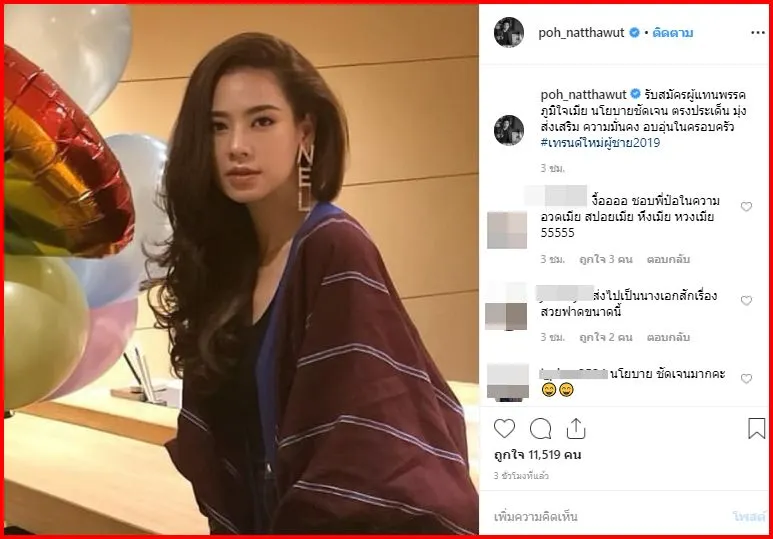 และล่าสุด สามีสุดที่รักของ เอ๋ พรทิพย์ ที่ในตอนนี้ อะไรนิดอะไรหน่อยหนุ่มป๋อก็ต้องเอาภรรยามาอวดลงไอจี แถมได้ข่าวมาว่าเจ้าตัวจะลงสมัครเป็นหัวหน้าพรรคภูมิใจเมียแล้วนะ