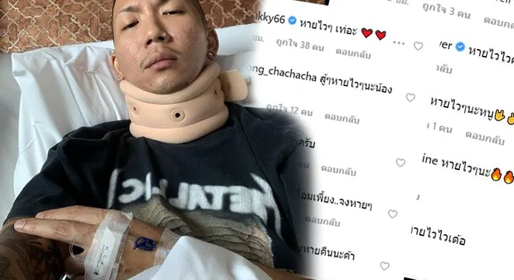 ฝือก คอ มา เตอร์ ฟัก เกอร์ ไม่พิมเยอะ เจ็บ คอ #ตลกรูปหล่อพ่อรวยรถเก๋งติดแก๊สแจ๊สสปุ๊กนิคปาปิยองกุ๊กกุ๊ก ภาพดังกล่าวนั้นเป็นภาพที่น่าตกใจมาก ๆ เพราะเหมือนกับว่าเป็นอุบัติเหตุร้ายแรงหรือเปล่าจน เปิ้ล นาคร ถึงกลับเข้าไปแสดงความอย่าเอามาใส่ล้อเล่นโบราณคือนะทั้งนี้ทั้งนั้นต่างก็มีเพื่อนพ้องในวงการบันเทิงอย่างตุ๊กกี้ โหน่ง ชะชะช่า ป๋อง กพล และดารารุ่นอื่น ๆ อีกมากมาย สร้างเข้าไปแสดงความคิดเห็นว่าขอให้หายวันหายคืนถึงอย่างไรก็ตามทางทีมงานเราก็ขอให้แจ๊สนั้นกลับมาแข็งแรงตั้งเสียงหัวเราะให้กับแฟนคลับไวๆนะจ๊ะ