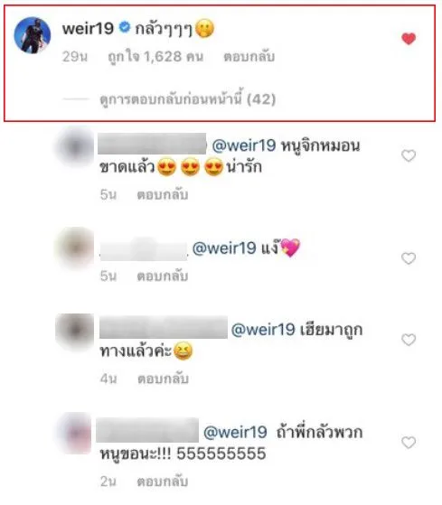 ทำเอาหวานใจตัวจริงอย่าง พี่เวียร์ ศุกลวัฒน์ เข้ามาคอมเม้นท์แซวเลยว่า “กลัวๆๆๆ” แหม…….กลัวแฟนหรอคะพี่เวียร์ ขนาดยังไม่แต่งงานยังกลัวและยอมน้องขนาดนี้ ถ้าแต่งไปรู้เลยนะว่าใครจะได้เป็นใหญ่ในบ้าน ชาวเน็ตจะเขินขนาดไหนไปอ่านกันเลยค่าาา