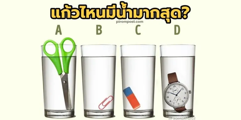 1.แก้วใบไหนที่มีน้ำมากที่สุด?