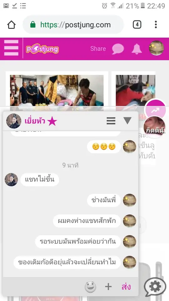 ถึงแอดมินที่รัก แอดรู้มั้ยว่าตลอดระยะเวลา2ปีที่กัฟเป็นสมาชิกมีชื่อในระบบpostjung กัฟได้ทำความรู้จักพบปะสังสรรค์ผ่านทางแชทของpostjung กับพี่ๆหลายๆคน ที่มีความเอื้อเฟื้อ แบ่งปันเกร็ดความรู้ต่างๆ ให้คำปรึกษาในวาระที่กัฟมีปัญหาผ่านแชทได้เป็นอย่างดี