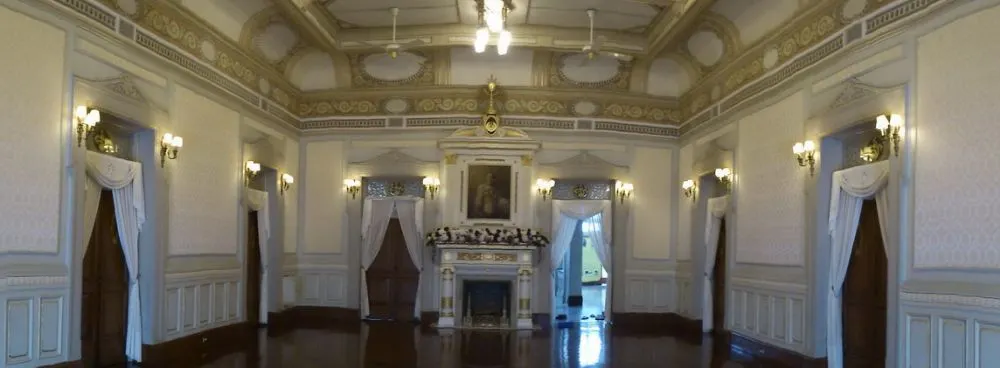 (ท้องพระโรงใช้รับแขกสำคัญ และว่าราชการ เหนือบานประตูจารึกอักษรพระปรมาภิไธย ร.ร. ๖)