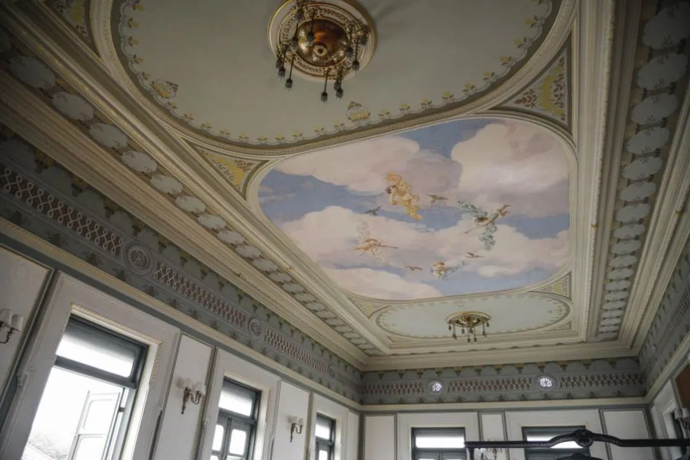 จิตกรรมแบบตะวันตก มีจิตรกรรมสีปูนแห้ง (fresco secco) บนเพดานและบริเวณด้านบนของผนังเขียนเป็นลายเชิงฝ้าเพดานรูปดอกไม้งดงาม บานประตูเป็นไม้สลักลายปิดทองลักษณะศิลปะวิคตอเรียน