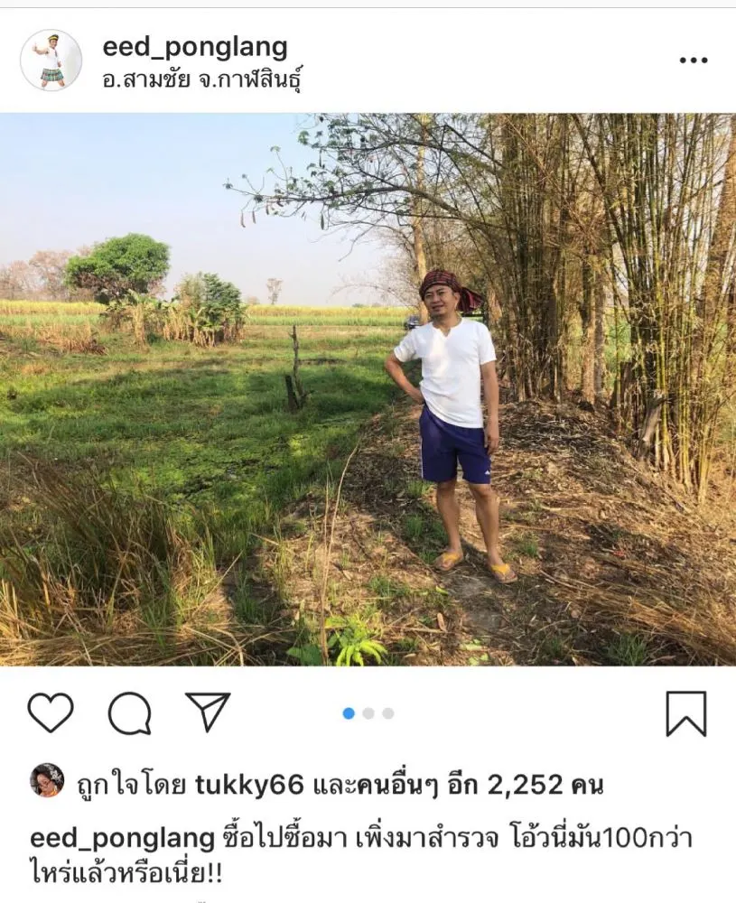 แต่ล่าสุดตลกรุ่นน้องคนหนึ่งซึ่งอายุจริงเท่ากันนั่นแหละแต่ ตลกรุ่นน้องคนนี้เพิ่งมาสังกัดทำงานทีเวิร์คพอยท์ทีหลังพึ่งจะออกมาเปิดใจในรายการดังของช่อง 3 ว่า ตลกหนุ่มชื่อดังคนนี้ชื่อว่า อี๊ด โปงลางสะออน หรือ สมพงษ์ คุนาประถม อายุ 40 ปี เท่าๆกับตุ๊กกี้นั่นแหละ ตอนแรกไม่มีใครรู้ว่า พ่อหนุ่มอี๊ด โปงลางสะออน จะรวยและมีทรัพย์สินเยอะขนาดนี้ จนมีการไปเปิดใจคุยในรายการว่า ตอนแรกก็ยังไม่มีอะไรมากหรอก แต่ค่อยๆสะสมซื้อที่นาที่บ้านเกิดที่จังหวัดจากซื้อที่นามาเก็บ ไร่สองไร่ เมื่อหลายปีก่อน แล้วจากนั้นก็มีชาวบ้านทะยอยมาเอาขายให้ช่วยไปซื้อที่ ครั้งละ 4-5 ไร่ พอผ่านไปหลายๆ อีกทีเอาโฉนดที่ซื้อที่นามานับกันแล้วปรากฏว่าตกใจมาก เขามีที่นามากกว่า 100 ไร่ คิดดูแล้วกันว่าเป็นเงินเท่าไหร่ แล้วราคาที่ดินมันเพิ่มขึ้นทุกปี เฉพาะที่น่าก็มีมูลค่า เฉียดๆ 100 ล้านแล้วนะ เพราะที่นาที่ละที่ที่อี๊ดซื้อไว้ ทำเลดีมาก