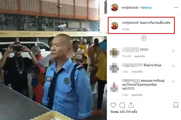 ล่าสุเตลกดัง หม่ำ จ๊กมก ไปยืนเกาะหน้าร้านก๋วยเตี๋ยวเพื่อรอกินก๋วยเตี๋ยวแต่ก็ต้องตาค้างเพราะแม่ค้าได้โชว์ลีลาการลวกเส้นอย่างเผ็ดร้อนเชื่อว่าในใจพี่หม่ำคงไม่อยากกินก๋วยเตี๋ยวแล้ว โดย คุณมด ภรรยา พี่หม่ำ เป็นคนโพสต์คลิปเอง พร้อมระบุแคปชั่นว่า “ไม่อยากกินก๋วยเตี๋ยวครับ” 555