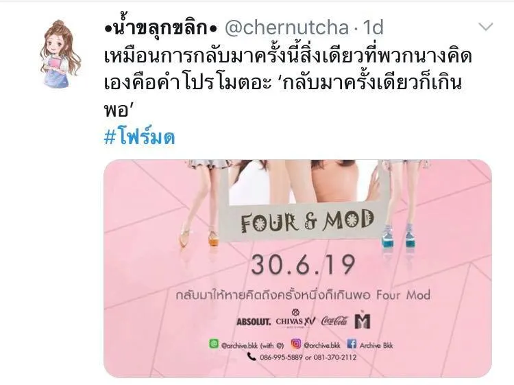 โฟร์-มด โดนแซวหนัก หลังกลับมาขึ้นคอนเสิร์ตด้วยกันอีกครั้งกับคำโปรย "กลับมาให้หายคิดถึงครั้งหนึ่งก็เกินพอ"