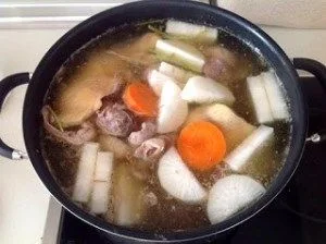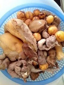 1.ตั้งหม้อต้มน้ำรอเดือดน้ำเดือดใส่ไก่เอาเต็มที่เท่าที่ต้องการเลยค่ะ คอยช้อนฟองทิ้ง