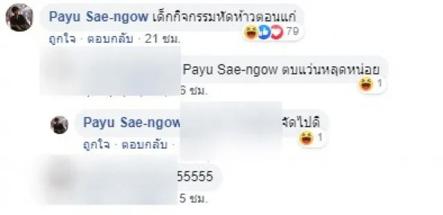 จนกระทั่งล่าสุดก็มีประเด็นที่ชาวเน็ตเข้ามาแสดงความคิดเห็นอย่างมากเมื่อ เฟซบุ๊ก "Payu Sae-ngow" หรือ "ไอ้ปืน" จากคลิปด่าตำรวจในตำนาน ได้ออกมาคอมเม้นท์ใต้คลิป โดยระบุข้อความว่า "เด็กกิจกรรมหัดห้าวตอนแก่" พร้อมกันนี้ยังได้มีการทำคลิปล้อเรียนอีกด้วย