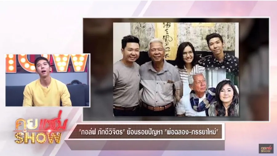 กอล์ฟ : “คือมันไม่ได้ไม่ลงรอยขนาดนั้น แต่ว่าหัวอกคนเป็นลูกอะ ตอนนั้นคุณแม่เพิ่งเสียด้วย แล้วเราก็เสียใจ ไม่นานคุณพ่อก็แต่งงานใหม่ก็เลยรู้สึกแบบว่าไม่พอใจ โมโห โกรธ แต่คุณพ่อกับผม น้องๆ ไม่มีอะไรกันหรอก แรกๆ น้องๆ ก็เสียใจก่อน ตอนนั้นพอเห็นน้องๆ เสียใจเราก็ปรี๊ดขึ้น แล้ววันนั้นข่าวออกมาก็ปรี๊ดด่าลงไอจีเลย”