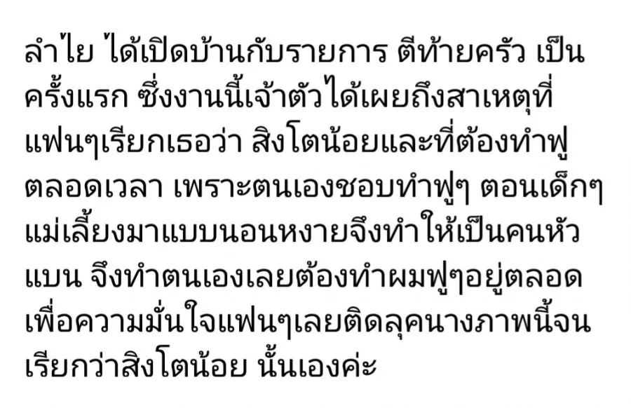 เปิดสาเหตุที่ ” ลำไย ” ต้องทำผมฟูอยู่ตลอดเวลา