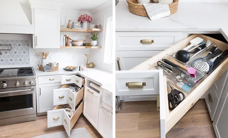 A great way to sort and organize in the kitchen & when needed those bins easily come out. The advantages of custom drawer size. #bespokecabinetry #bespokekitchen #watchtowerinteriorsinc #kitchenorganization #smartkitchen #veggiedrawer #kitchendesign #goldhardware #organizer #kitchenorganizer #ocdheaven #drawerorganizer