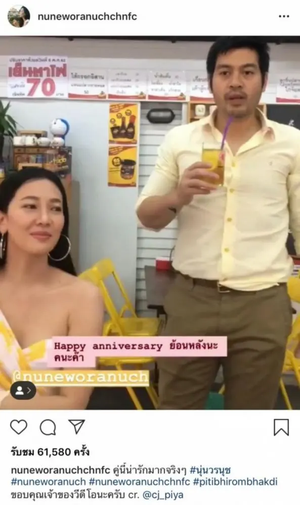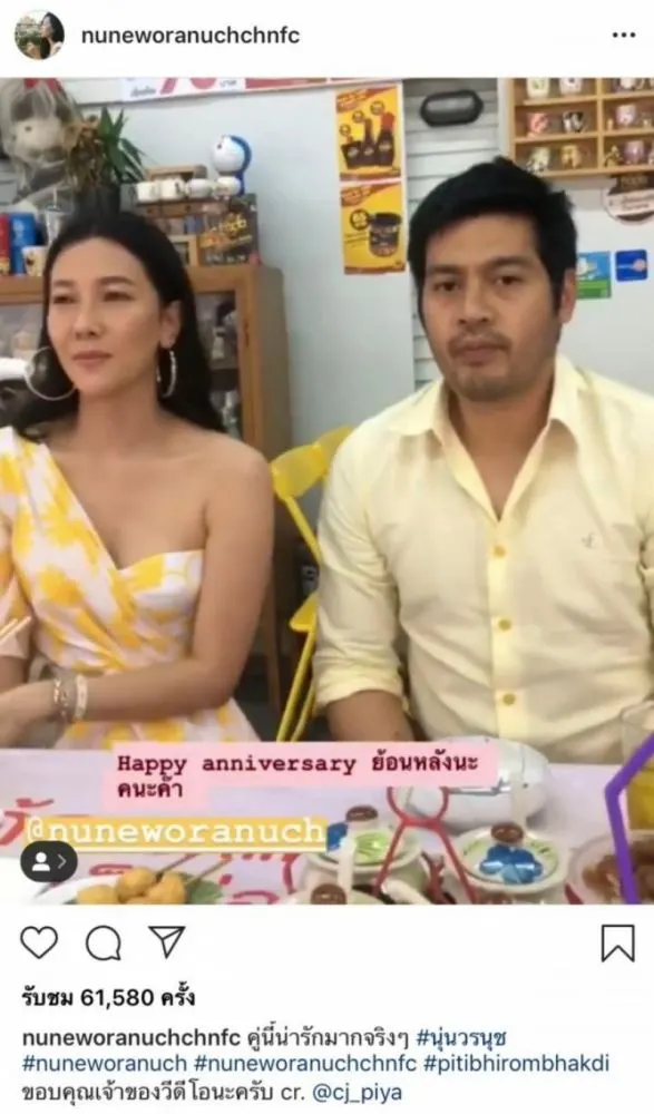 เป็นอีกหนึ่งคู่รักดาราดังที่เรียกได้ว่าแต่งงานกันมานานแล้ว สำหรับ นุ่น วรนุช และ ต๊อด ปิติ ที่ล่าสุดเพิ่งจะผ่านพ้นวันครบรอบแต่งงาน 9 ปีไปสดๆ ร้อนๆ งานนี้เพื่อนซี้อย่าง เจี๊ยบ ชมพูนุช ได้ถ่ายคลิปอวยพรทั้งคู่ลงไอจีสตอรี่ของตัวเอง แล้วอินสตาแกรมที่ชื่อว่า nuneworanuchchnfc ก็ได้นำคลิปดังกล่าวมาโพสต์ลงในอินสตาแกรม พร้อมแคปชั่นว่า