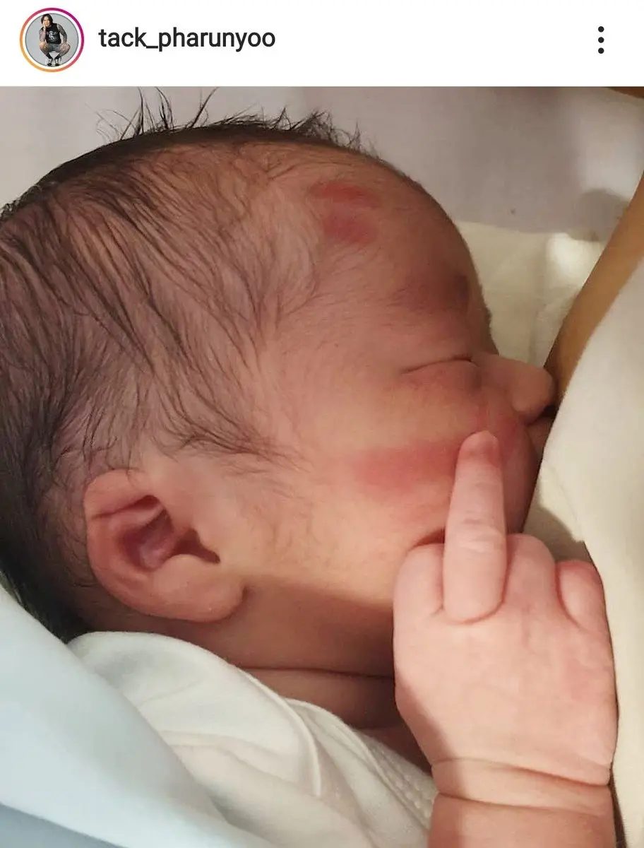 อย่างที่เห็นไอจีก็มีการเอาภาพตัวเองตอนเด็กมาเปรียบเทียบกับภาพอัลตร้าซาวด์ น้องพารัน ลูกชายคนแรก พร้อมกับใส่แคปชั่นว่า “สำเนาถูกต้อง…ท่าเดียวกัน #คนมีรอยสักเลี้ยงลูกเท่จะตาย #แทคภรัณยู”