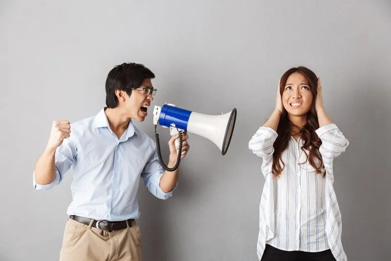 เข้าใจในช่วงที่หัวร้อนมันยากมากที่จะควบคุมระดับเสียงของตัวเองได้ แต่หนุ่ม ๆ โปรดจำไว้เลยว่า เมื่อไหร่ที่คุณตะคอกหรือตะโกนขึ้นเสียงใส่ อีกฝ่ายก็จะตอบโต้เสียงดังกลับมาเหมือนกัน ! เหมือนเป็นการจุดฉนวนให้ศึกแห่งอารมณ์ครั้งนี้ทวีคูณความรุนแรงขึ้นไปอีกระดับ และสุดท้ายมักจบไม่ค่อยสวย