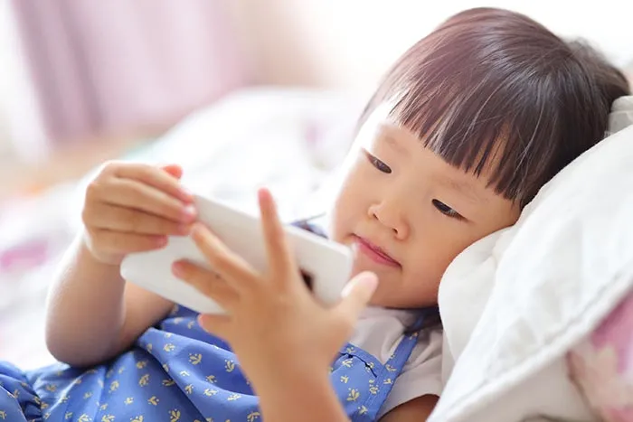 การให้ลูกเล่นหรือดูหน้าจอโทรศัพท์ก่อนนอน แสงจากหน้าจอที่สว่าง ๆ จะส่งผลต่อการหลั่งฮอร์โมน "เมลาโทนิน" ที่ช่วยควบคุมการนอนหลับ เนื่องจากการปล่อยฮอร์โมนดังกล่าวจะขึ้นอยู่กับแสงสว่างเป็นสำคัญ อีกทั้งยังเป็นปัญหาต่อคุณภาพการนอนหลับ ทำให้เด็กนอนฝันร้าย หรือนอนไม่หลับ ซึ่งมีผลทำลายการทำงานของเซลล์ประสาท ส่งผลระยะยาวไปถึงตอนโตได้