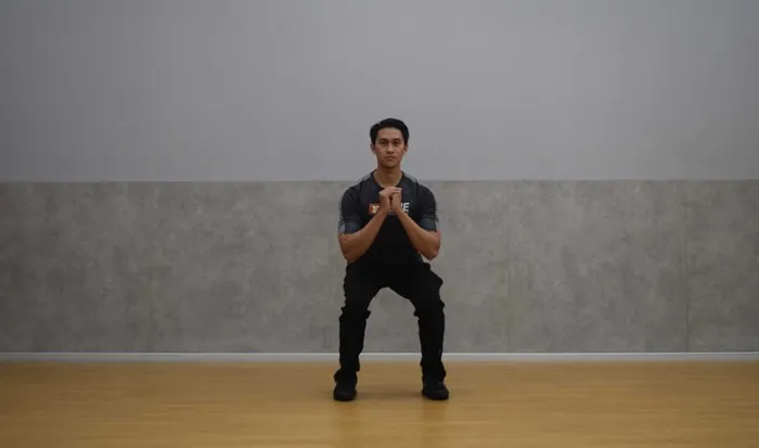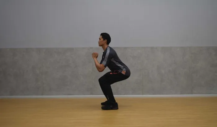1. ท่า Squat เป็นท่าบริหารกล้ามเนื้อส่วนขาหน้า ขาหลังและกล้ามเนื้อบริเวณก้น โดยมีหลักการง่ายๆ ยืนตรงวางเท้ากว้างประมาณหัวไหล่ ปลายเท้าชี้ไปด้านหน้าแล้วค่อยๆ พับตัวลงโดยที่หลังตรงไม่แอ่นหรือโก่ง ทิ้งน้ำหนักตัวให้อยู่บริเวณหน้าขา หลังขา และบริเวณก้น เท้าจะต้องแนบชิดกับพื้น ระดับการย่อสำหรับผู้เริ่มต้นอาจจะไม่ต้องย่อเยอะมาก หรือให้อยู่ระดับต่ำกว่าเข่าเพียงเล็กน้อย ทำทั้งหมด3เซต เซตละ 15 ครั้ง ระหว่างเซตพัก 1 นาที