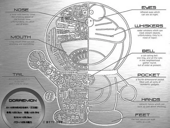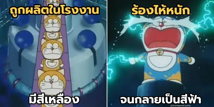 1. โดราเอมอน เดิมทีคือหุ่นยนต์ธรรมดาๆ ที่ถูกผลิตเมื่อวันที่ 3 กันยายน ค.ศ. 2112 ที่โรงงานหุ่นยนต์มัตสึชิบะ