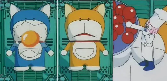 3. สีเหลืองของโดราเอมอนตอนสร้าง มาจากวัตถุดิบที่คล้ายไข่ ส่วนจมูกสีแดง มาจากสิ่งที่คล้ายกับเชอร์รี