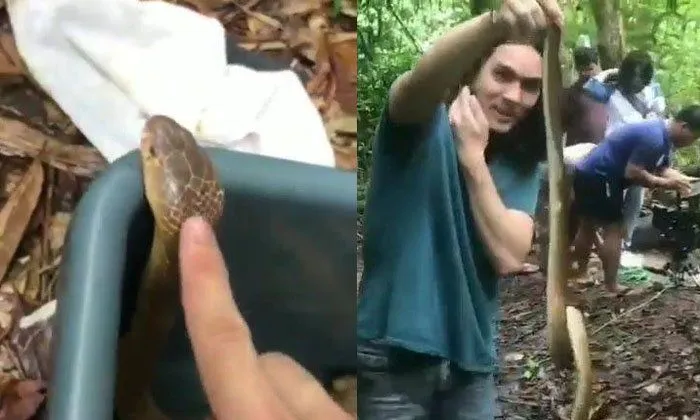 สกิลขั้นเทพ! “แน็ก ชาลี” อวดลีลาการจับงูเห่าด้วยมือเปล่า
