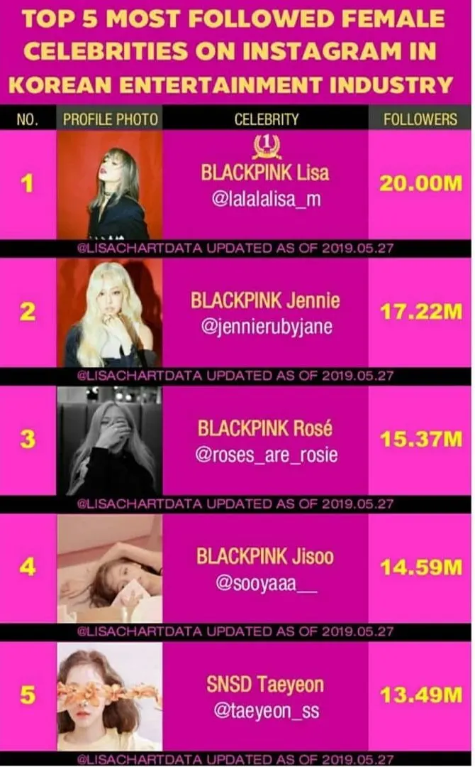 สาวไทยหนึ่งเดียว!! ลิซ่า BLACKPINK ยอดติดตาม IG พุ่งสูง 20 ล้าน จนคว้าอันดับ 1 ใน KPOP แล้ว