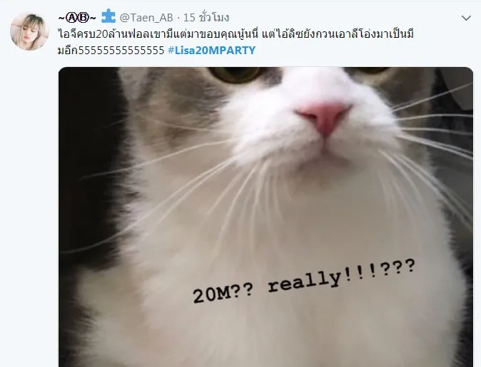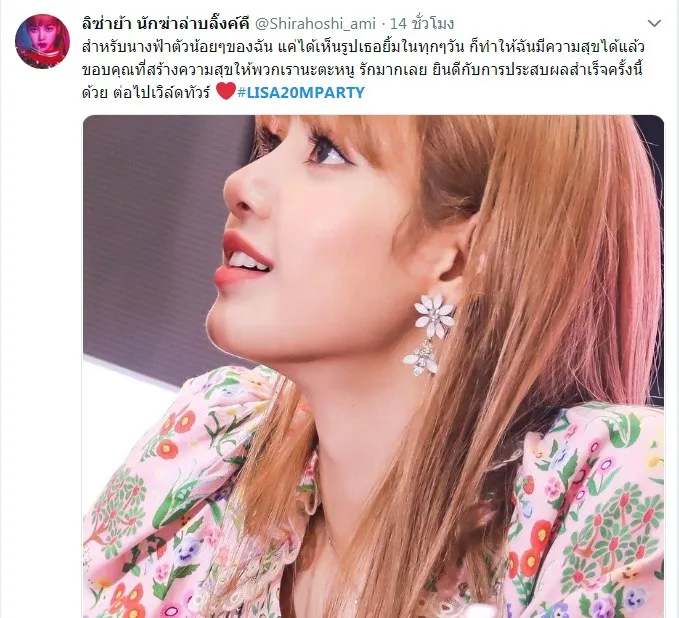 สุดยอดสาวไทย ลิซ่า BLACKPINK ฮอตทั่วโลกจนมีแฟนคลับติดตามใน IG พุ่ง 20 ล้าน เป็นอันดับ 1 วงการ KPOP เกาหลี - คนแรกของไทย ทำ #LISA20MPARTY ใน twitter ติดเทรนด์ทั่วโลกด้วย