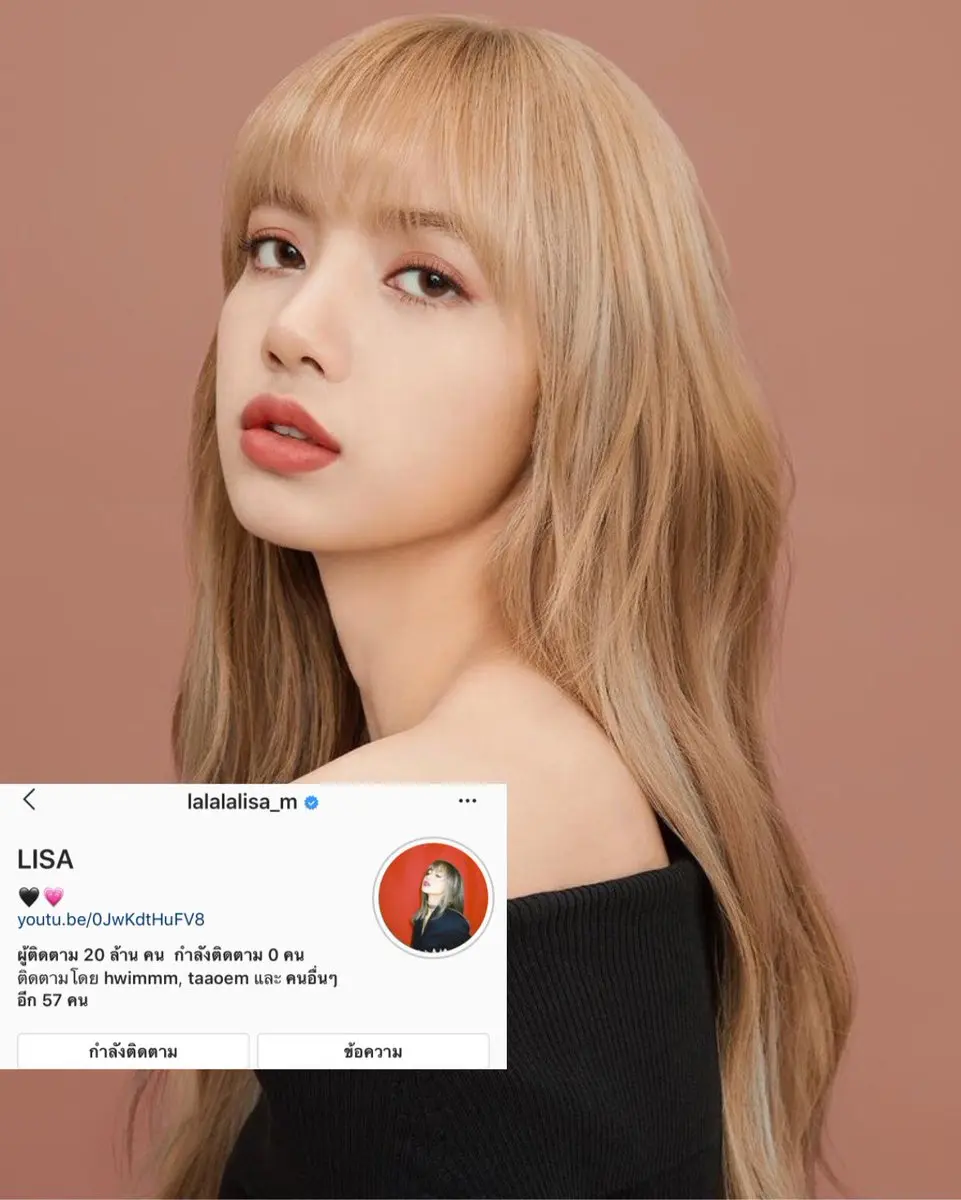 ลิซ่า หรือ ลลิษา มโนบาล สามาชิก BLACKPINK สาวไทยหนึ่งเดียวจากสมาชิกวงเกิร์ลกรุ๊ปที่โด่งดังไปทั่วโลก ล่าสุดอินสตาแกรมส่วนตัวของเธอ มีผู้ติดตามมากถึง 20 ล้านคน