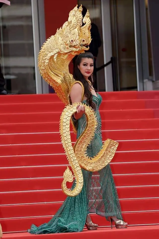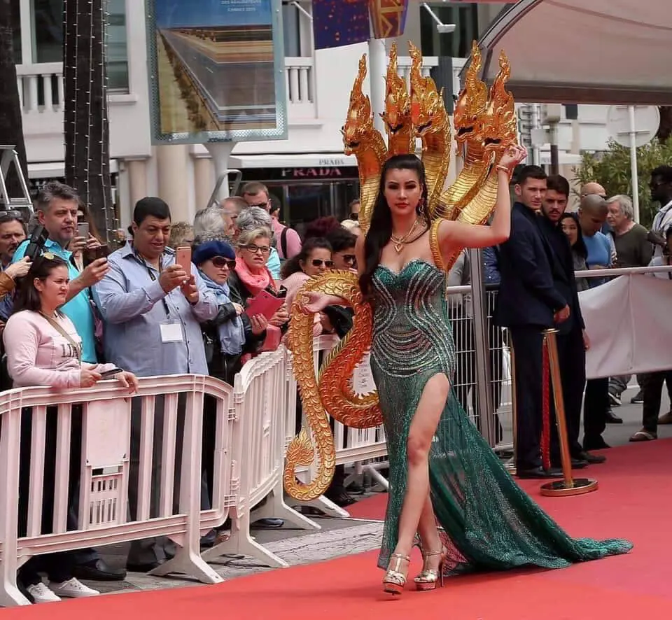 สื่อต่างชาติ ฮือฮา “ดร.ยุ้ย กันธิชา” สาวไทยใส่ชุดเจ้าแม่นาคี เดินพรมแดง เทศกาลหนังเมืองคานส์
