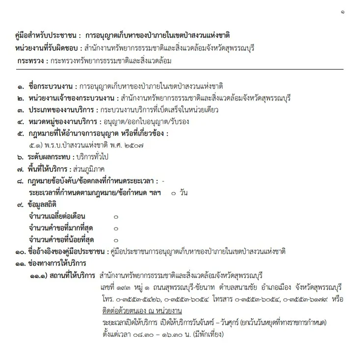 ภาพตัวอย่างการขออนุญาตเข้าเก็บของป่า (เป็นเพียงแค่ข้อมูลตัวอย่าง)