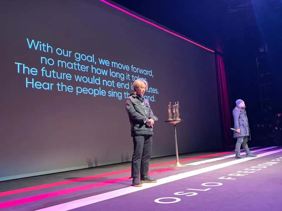 ซึ่งล่าสุด Rap Against Dictatorship โพสต์ภาพ พร้อมเขียนข้อความบรรยายว่า พวกเรา Rap Against Dictatorship กำลังเดินทางไปรับรางวัล Václav Havel Prize for Creative Dissent ที่กรุงออสโล ประเทศนอร์เวย์
