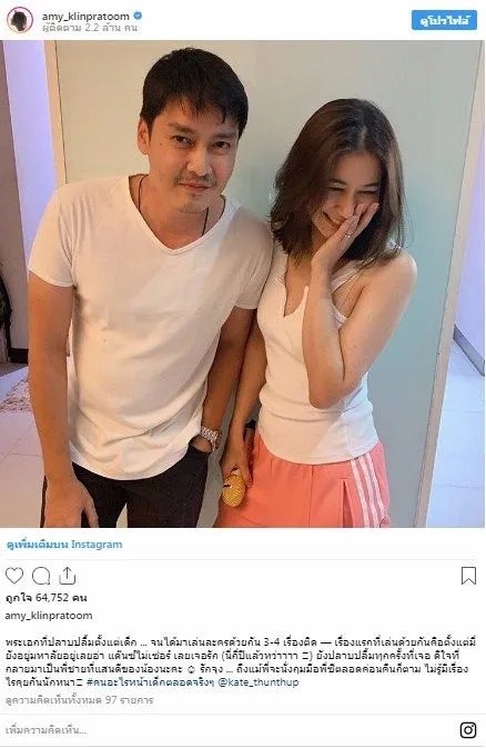 และล่าสุด สาวเอมี่ ก็ได้โพสต์ภาพคู่กับหนุ่มเขตต์ พร้อมแคปชั่นว่า ” พระเอกที่ปลาบปลื้มตั้งแต่เด็ก … จนได้มาเล่นละครด้วยกัน 3-4 เรื่องติด — เรื่องแรกที่เล่นด้วยกันคือตั้งแต่มี่ยังอยู่มหาลัยอยู่เลยอ่า แด๊นซ์ไม่เซ่อร์ เลยเจอรัก (นี่กี่ปีแล้วหว่าาาา ) ยังปลาบปลื้มทุกครั้งที่เจอ ดีใจที่กลายมาเป็นพี่ชายที่แสนดีของน้องนะคะ รักจุง … ถึงแม้พี่จะนั่งกุมมือพี่ซีตลอดค่อนคืนก็ตาม ไม่รู้มีเรื่องไรคุยกันนักหนา #คนอะไรหน้าเด็กตลอดจริงๆ @kate_thunthup ”