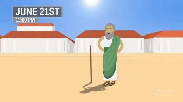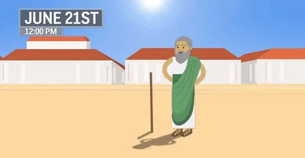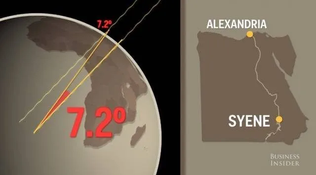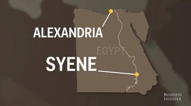 ดังนั้นเขาจึงเอาไม้ปักลงบนดินที่อเล็กซานเดรียเพื่อทดลองว่าในอเล็กซานเดรียนั้น ตอนเที่ยงพระอาทิตย์จะตรงกับบนหัวเช่นกันไหม