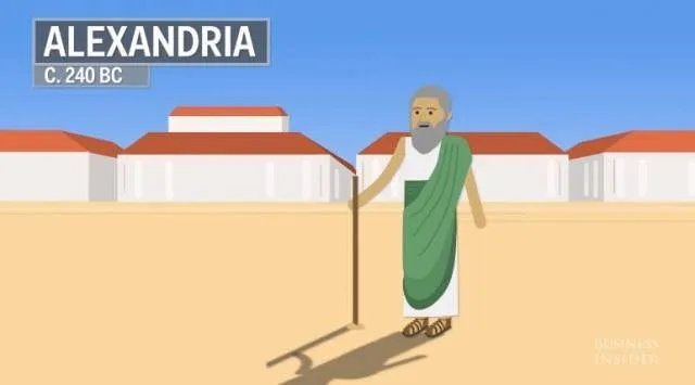ชายที่พิสูจน์เรื่องนี้ มีนามว่า “เอราทอสเทนีส” ชายชาวกรีกผู้ที่ได้รับการยกย่องว่าเป็นบิดาแห่งภูมิศาสตร์ (เนื่องจากเป็นคนแรกที่เรียกตัวเองว่า “Geographer” หรือนักภูมิศาสตร์) เขาเป็นชายคนแรกที่คิดหาวิธีการกำหนดตำแหน่งของสถานที่อย่างแม่นยำ และมีผลงานเด่นๆ มากมายเกี่ยวกับภูมิศาสตร์โลก