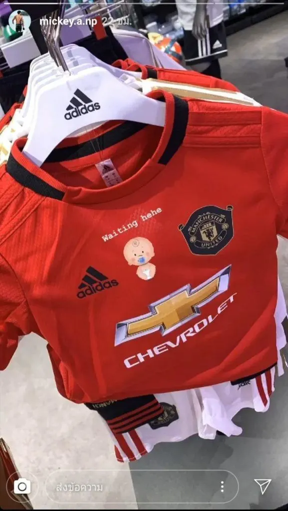 ล่าสุด มิกกี้-นนท์ อัลภาชน์ ณ ป้อมเพชร สามีของ เจนี่ ก็ได้โพสต์ภาพชุดฟุตบอลของเด็กลงในไอจีสตอรี่ ซึ่งเป็นทีมโปรดอย่าง ทีมแมนเชสเตอร์ยูไนเต็ด พร้อมเขียนข้อความไว้ว่า “Waiting hehe”