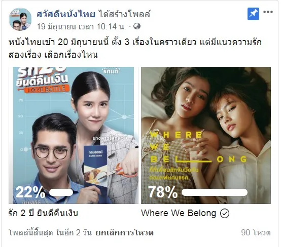 หนังอะไรน่าดู!! เมื่อเพจ สวัสดีหนังไทย ทำโพลล์ หนังไทย 2 เรื่อง