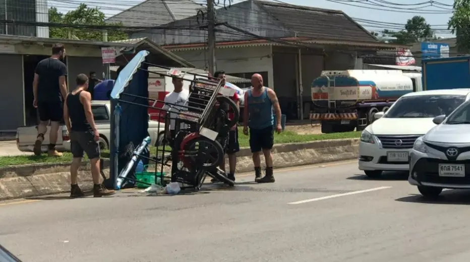 ฟาสต์9 วันที่ 27 มิ.ย. ผู้สื่อข่าวรายงานว่าผู้ใช้เฟซบุ๊ก “Namtal Paphatchaya Kyokong” ได้นำภาพกลุ่มชายชาวต่างชาติ 4-5 คน รูปร่างกำยำ กำลังยืมล้อม รถจยย.พ่วงข้าง ที่ยู่กลางถนน