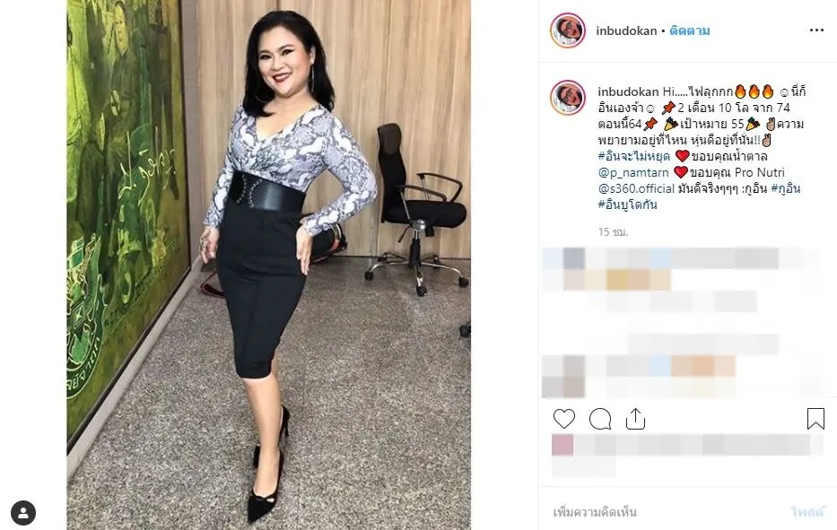 “Hi…..ไฟลุกก นี่ก็อินเองจ้า 2 เดือน 10 โล จาก 74 ตอนนี้64 เป้าหมาย 55 ความพยายามอยู่ที่ไหน หุ่นดีอยู่ที่นั่น!! #อินจะไม่หยุด ขอบคุณน้ำตาล p_namtarn ขอบคุณ Pro Nutri s360.official มันดีจริงๆๆๆ :Xอิน #Xอิน #อินบูโดกัน” งานนี้เหล่าคนดังในวงการบันเทิงก็ต่างเข้ามาคอมเมนต์กันอย่างมากมาย