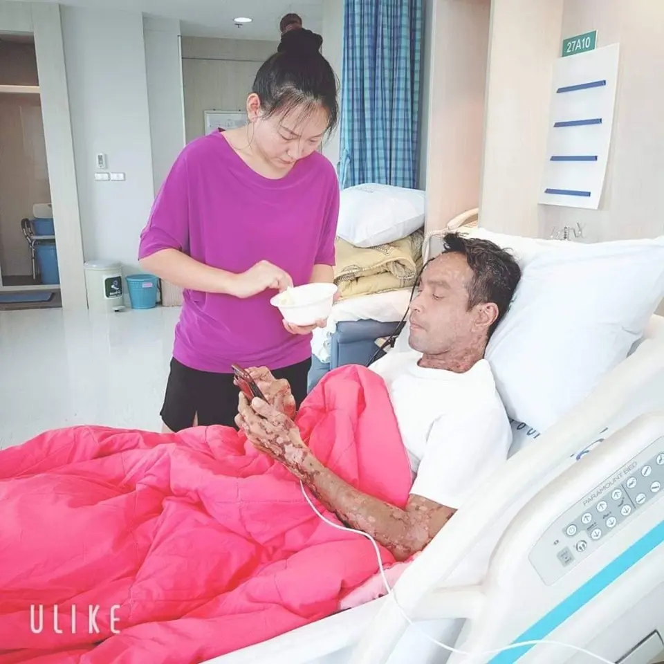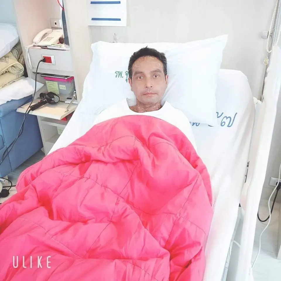 ต่อมา คุณเมฆ วินัย ไกรบุตร โพสต์เฟซบุ๊คเป็นภาพนอนรักษาตัวในโรงพยาบาล พร้อมระบุว่า “วันนี้มากัน ครบ น้องเอ๋ หลานหน่อง น้องนา ป้าตุ้ม ให้กินโจ๊กเท่านั้น ปากอักเสบมาก กลืนทางเดียว น้ำหนักเหลือ 63 ก.ก.แล้ว 555 ทำผอมๆ ขอบคุณทุกคน”