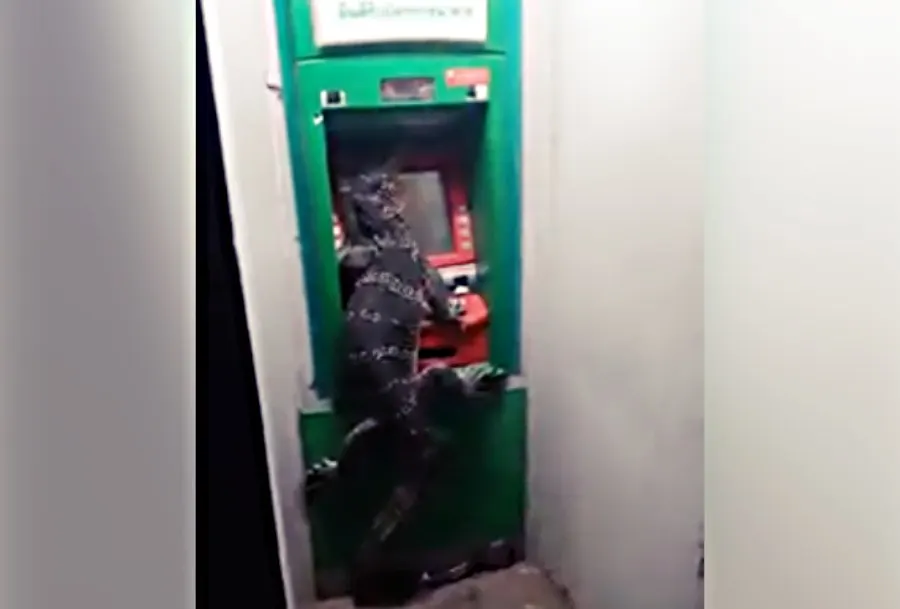 ตกใจ! ตัวเงินตัวทองขนาดใหญ่เกาะตู้เอทีเอ็ม