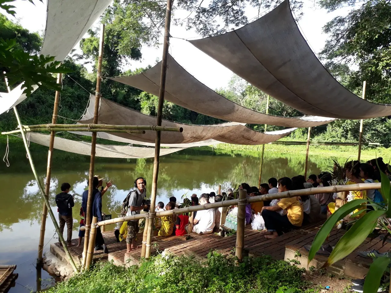 ไปสัมผัสตลาดชาวกะเหรี่ยงที่ดูร่มรื่น พร้อมกิจกรรมที่ชาวพุทธชื่นชอบ ตักบาตรพระลอยน้ำ