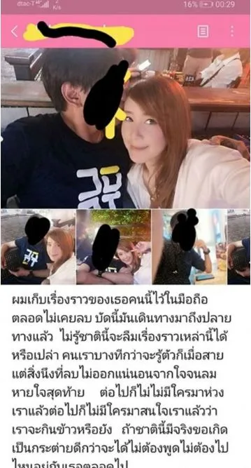 ล่าสุดออกมาโพสต์แฉอดีตหนุ่มคนเคยรัก หลังไปรู้เรื่องราวว่าฝ่ายชายโกหกว่าไม่มีลูก ไม่มีเมียแต่อันที่จริงฝ่ายชายมีภรรยาอยู่แล้ว แถมจดทะเบียนสมรสกันแบเงียบๆ มากว่า 10 ปีรวมทั้งยังมีลูกด้วยกันอีก 2 คน