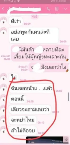 ฝ่ายชายยังพยายามขอโอกาสและอยากให้อโหสิกรรม เพราะบอกว่าตั้งใจจะบวช ถึงขั้นจะมากราบเท้า จะเอาขันธ์ 5 มา แต่กลับกลายเป็นว่าก่อนบวชแค่ 1 วันฝ่ายชายยังไปเที่ยวเริงร่าตามร้านอาหาร นัดคุยก็เงียบโทรไม่รับสายไลน์ไปก็ไม่ตอบบอกจะลงขอโทษแต่กลับพลาดใช้เฟซอีกอัน แถมยังพูดให้คนนู้นคนนี้ทะเลาะกัน
