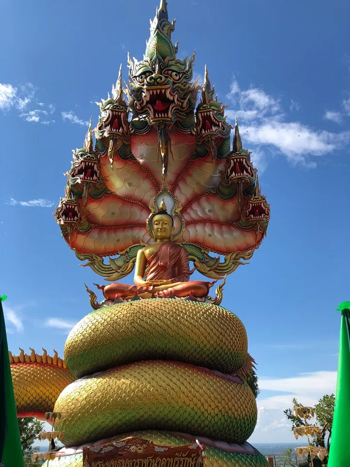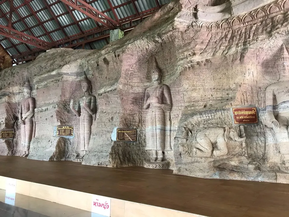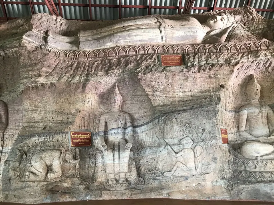 มีรถรับส่งขึ้นไปถึงวัดที่อยู่บนยอดเนิน ก็สะดวกดี ข้างบนก็มีพระพุทธรูปหลายปางที่แกะสลักบนก้อนหิน