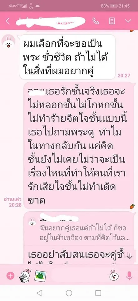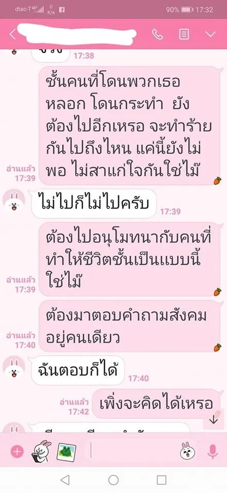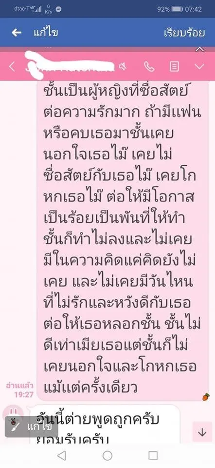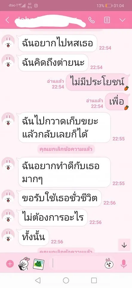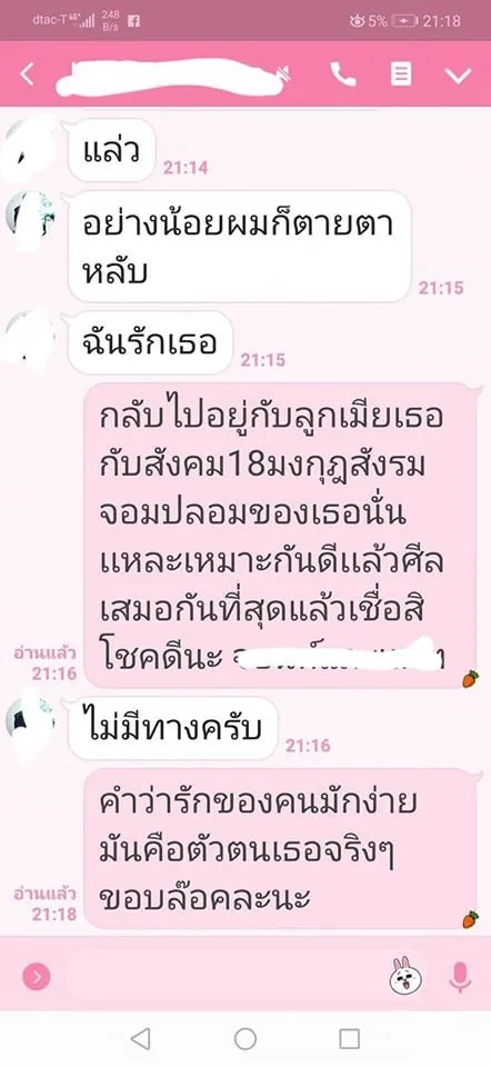 ผญ.ก็ปิดบังคนอื่นเรื่องมีลูกมีครอบครัวและไปกับผช.คนอื่นเช่นกัน อย่าหาเงินด้วยวิธีนี้เลยมันลวงโลก ละครเรื่องนี้ยังมีตัวละครเเละหลักฐานอีกเยอะ แต่ผช.ขอไว้ว่าให้เห็นแก่หน้าเค้าและครอบครัว แต่ไม่เคยนึกถึงคนที่ถูกกระทำเลยจนวันนี้ยังไม่สำนึกบอกจะขอโทษให้สังคมรับรู้ แต่ไม่สำนึก ยังไปลั้นลาสบายใจ และไม่รับสายไม่ตอบไลน์หวังให้เรื่องเงียบ แต่เหยื่อไม่ได้มีคนเดียวนะ เพียบ เป็นซีรี่ย์เลยล่ะ ทำเป็นเเพทเทินมากเอาไว้ไปดูพล๊อตเรื่องต่อไปแล้วจะมาพูดม้วนเดียวจบนะคะ"