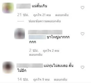 เพราะงานนี้ชาวเน็ตก็คอมเม้นท์เลยว่ากางเกงสั้นเกิน โดยการเข้ามาคอมเม้นท์รัวๆว่า “แม่สั้นเกิน” , “แม่หุ่นไม่ลงเลย สั้นไปอีก” แหมๆๆ มันคงเป็นสไตล์ของคุณแม่แหละเนอะ แต่ชาวเน็ตก็คงจะทักเพราะห่วงเรื่องภาพลักษณ์ยังไงก็เข้าใจทั้งสองฝ่ายนะคะ