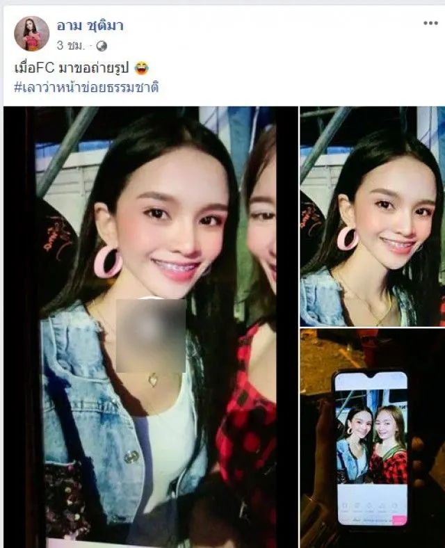 เชื่อว่าหลายๆคนคงรู้จักกันเป็นอย่างดี สำหรับนักร้องลูกทุ่งเสียงดีอย่าง อาม ชุติมา ที่ต้องบอกเลยว่าช่วงนี้งานปังสุดๆ ออกเดินสายทำงาน ทุกทั่วจังหวัดเลยก็ว่าได้ แต่เชื่อว่าหลายๆคนคงสังเกตุเห็น ว่าช่วงหลังๆ สาว อาม ชุติมา นั้นสวยขึ้น ผิดหูผิดตามาก ล่าสุดเจ้าตัวได้ออกมาโพสต์ภาพที่ถ่ายคู่กับแฟนคลับ พร้อมทั้งได้ระบุข้อความว่า… “เมื่อFC มาขอถ่ายรูป #เลาว่าหน้าข่อยธรรมชาติ” แน่นอนว่าหลังจากที่เธอโพสต์ลงไปนั้นแฟนคลับเห็นแว๊บแรกตกใจไม่น้อยไม่คิดว่าดังแล้วจะเปลี่ยนไปขนาดนี้เอาเป็นว่าเราไปชมภาพด้านล่างกันเลยดีกว่าจ้า