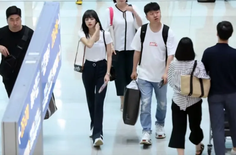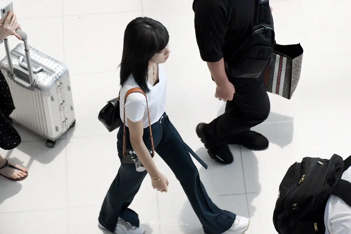 มาชมภาพแฟชั่นสนามบิน กับลุคใหม่ผมดำ ของเธอกัน
