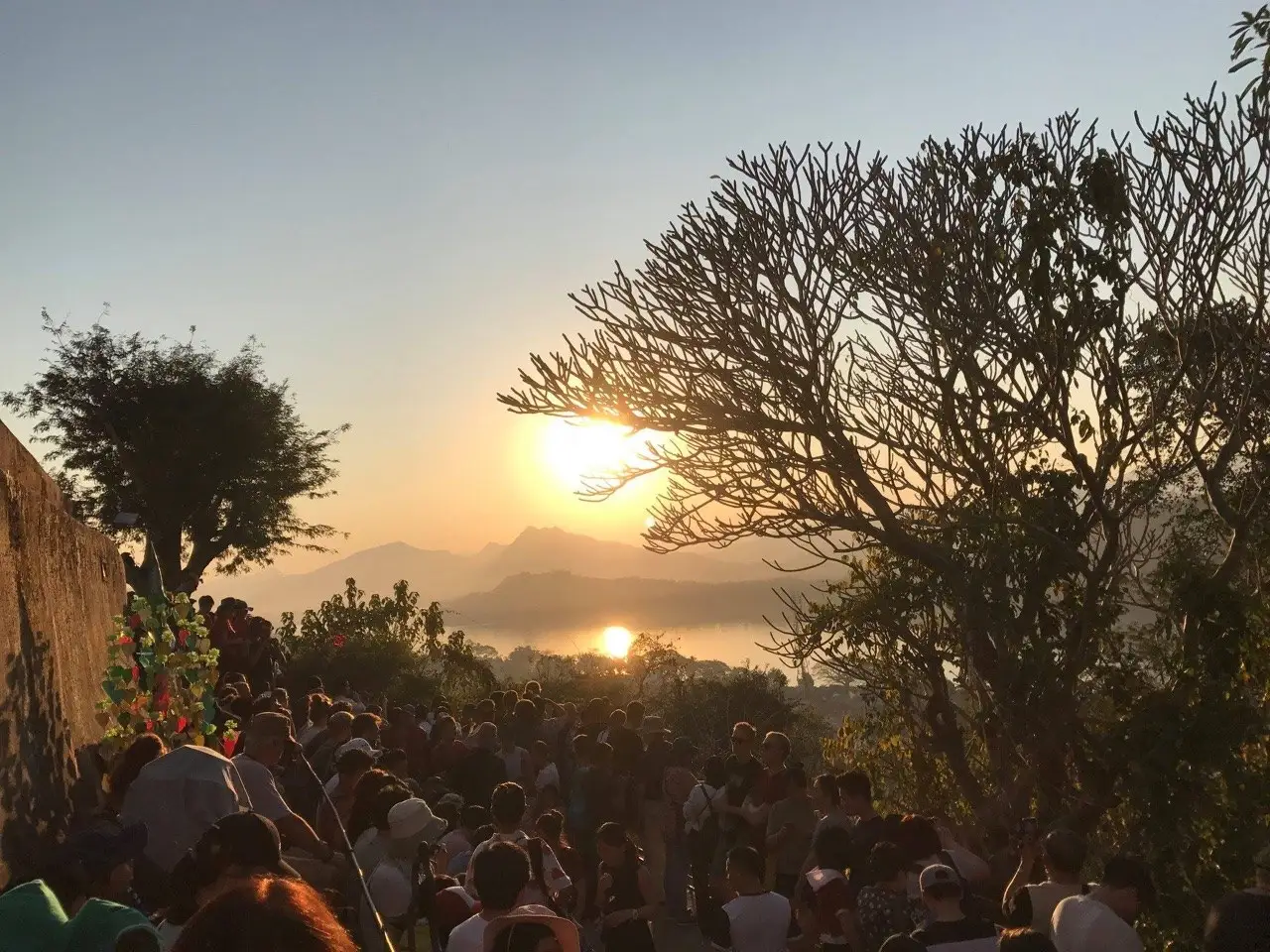 บรรยากาศอาทิตย์ตกดินที่พระธาตุพูสีแห่งสปป.ลาว