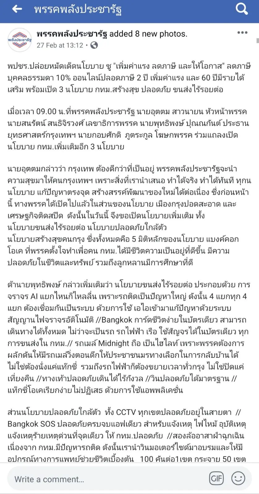 แต่ในส่วนนโยบายลดภาษีบุคคลธรรมดาของ พปชร. ให้ลดอัตราภาษี 10% ซึ่งจะทำให้ฐานภาษีหายไปเลยเพราะทำให้ผู้เสียภาษีเงินได้บุคคลธรรมดาที่ 5% หรือ 10% จะไม่ต้องเสียภาษี ทำให้ฐานผู้เสียภาษีที่น้อยอยู่แล้วที่ตอนนี้มี 4 ล้านคน จะเหลือแค่ 1 ล้านคน