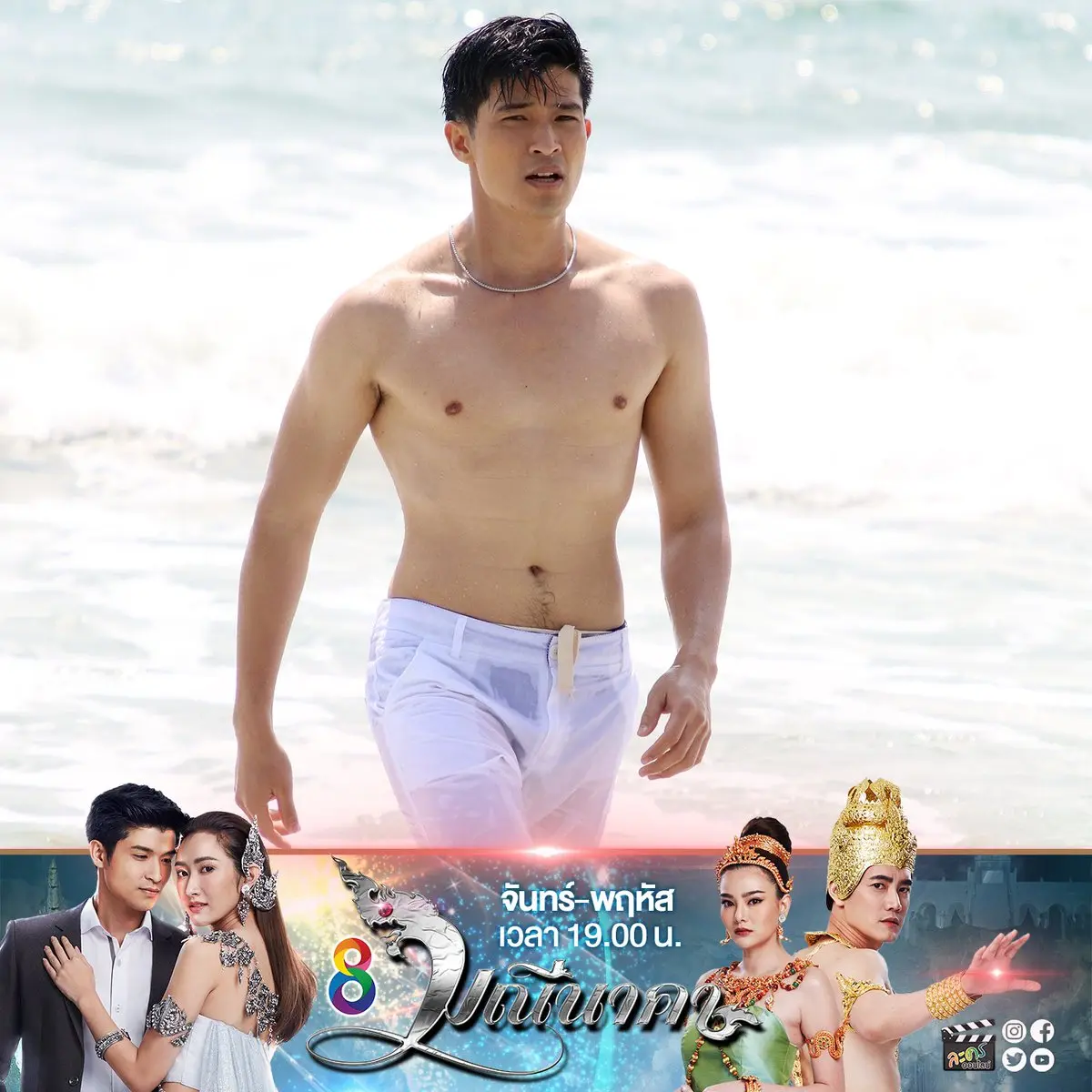 ส่องพระเอก"ตูมตาม ยุทธนา" ในละคร "มณีนาคา" ช็อตจุกคลื่นปะทะเป้าเต็มแรง