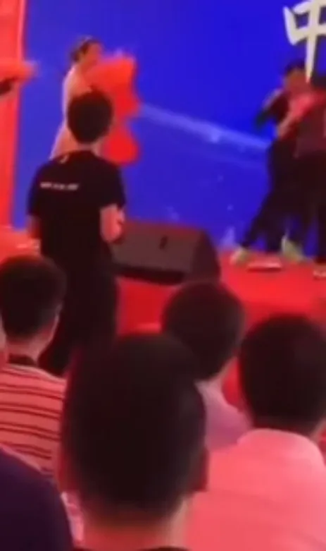 2- ระหว่างให้สัมภาษณ์และทำกิจกรรมบนเวทีอยู่นั้น จู่ๆก็มีผู้ชายคนหนึ่งเดินขึ้นไปบนเวที แล้วล้วงเอามีดออกมาจากกระเป๋า จ้วงแทงไปที่ท้องของเยิ่นต๊ะหัวทันที